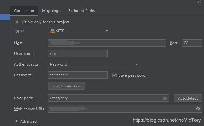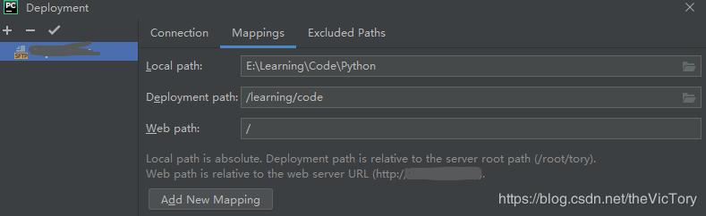 如果希望实现项目同步可以定义对话框的第二个标签页Mappings,将本地的项目目录映射到服务器的指定目录