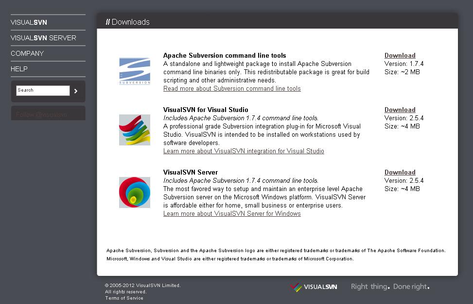 点开上面的VisualSVN连接,下载VisualSVN server,如图:
