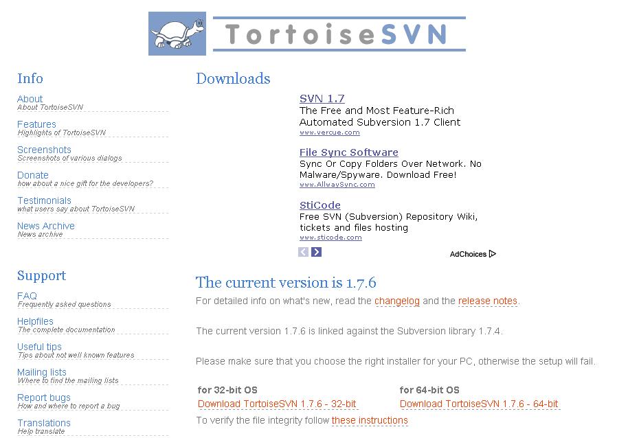 然后下载TortoiseSVN客户端,官网下载地址:http://tortoisesvn.net/downloads.html