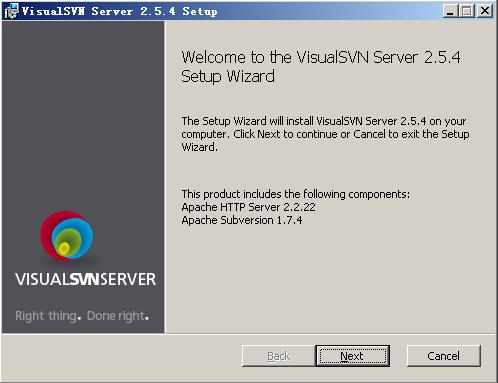 先安装VisualSVN server的安装包,双击VisualSVN server安装包,如图: