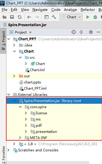 方法1:通过官网下载jar文件包。下载后,解压文件,并将lib文件夹下的Spire.Presentation.jar导入java程序。参考如下导入效果: