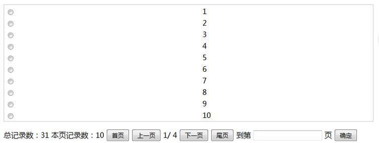 <div> <p> <span> 总记录数:<span class="rjAllNums" ng-bind="page.nums"></span> 本页记录数:<span class="rjNowNums" ng-bind="page.nowNums"></span> </span> <button class="rjFirtPage" ng-click="jumpPage(1,dataList)">首页</button> <button class="rjPrePage" ng-click="jumpPage(page.now-1,dataList)">上一页</button> <span> <span class="rjNowPage" ng-bind="page.now"></span>/ <span class="rjAllPage" ng-bind="page.pageCount"></span> </span> <button class="rjNextPage" ng-click="jumpPage(page.now+1,dataList)">下一页</button> <button class="rjLastPage" ng-click="jumpPage(page.pageCount,dataList)">尾页</button> 到第 <input class="rjJumpInput" type="text" ng-model="page.jumpPage" name="rjPageName" value=""/> 页 <button class="rjJumpBtn" ng-click="jumpPage(page.jumpPage,dataList)">确定</button> </p> </div>