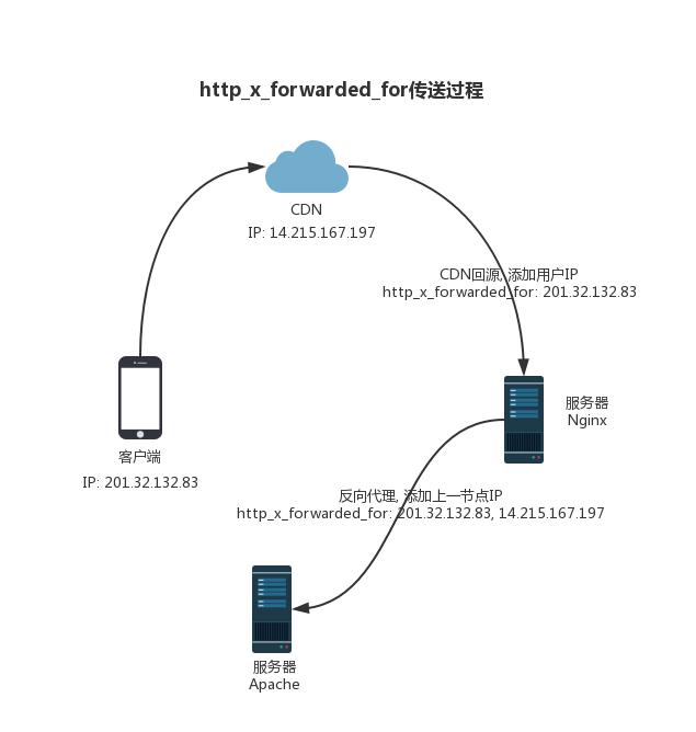 基于《一》,在负载均衡的情况下直接使用 REMOTE_ADDR 是无法获取客户端 IP 的,这就是一个问题,必须解决。于是就衍生出了负载均衡端将客户端 IP 加入到 HEAD 中发送给服务端,让服务端可以获取到客户端的真实 IP 。当然也就产生了各位所说的伪造,毕竟 HEAD 除了协议里固定的那几个数据,其他数据都是可自定义的。三、为何网上找到获取客户端 IP 的代码都要依次获取 HTTP_CLIENT_IP 、 HTTP_X_FORWARDED_FOR 和 REMOTE_ADDR