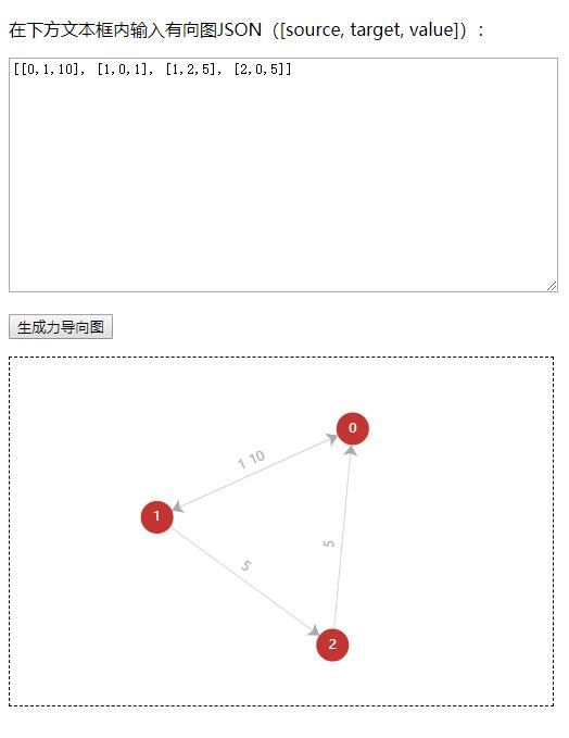 <p>在下方文本框内输入有向图JSON([source, target, value]):</p>