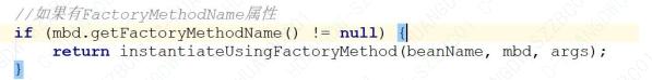 这个方法是反射调用类中的 factoryMethod 方法。 这要知道@Bean 方法的原理, 实际上spring 会扫描有@bean 注解的方法, 然后把方法名称设置到 BeanDefinition 的 factoryMethod属性中, 接下来就会调到上面截图中的方法实现@Bean 方法的调用。