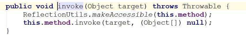 这里又是一个 BeanPostProcessor 接口的运用,前面讲过, 有@PostConstruct 注解的方法会收集到一个 met就是通过 BeanPostProcessor 接口调到CommonAnnotationBeanPostProcessor 类, 然后在类中拿根据对象里面的容器来反射调用有注解的方法。 代码如下: