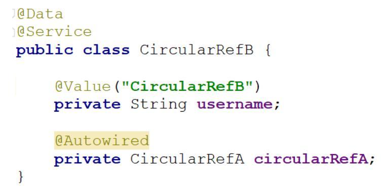 7、 B 类实例化已经完成, B 类的实例化是由 A 类实例化中 B 属性的依赖注入触发的 getBean 操作进行的, 现在 B 已经实例化, 所以 A 类中 B 属性就可以完成依赖注入了, 这时候 A 类 B 属性已经有值了