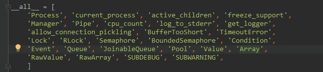 如图,multiprocessing有多个函数,很多我也还没去了解,这里只讲我目前了解的.