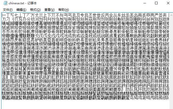 在同目录文件下,生成汉字字库的chinese.txt文件: