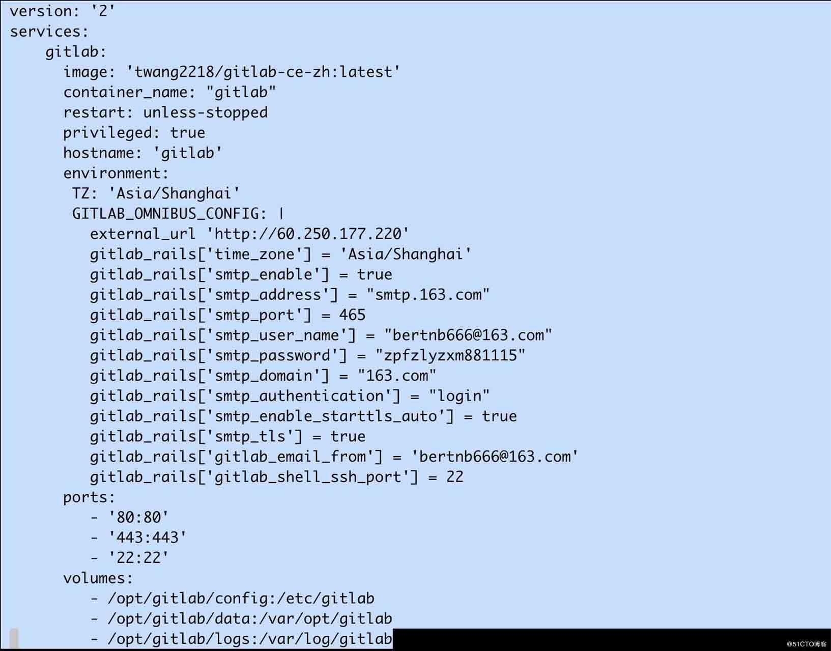 [root@gitlab ~]# mkdir gitlab [root@gitlab ~]# cd gitlab [root@gitlab gitlab]# vim docker-compose.yml