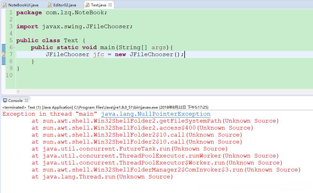 实例化JFileChooser对象报空指针异常问题的解决办法