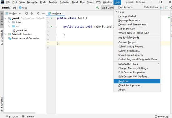 进入 IDEA 界面后,点击 Help -> Register 查看: