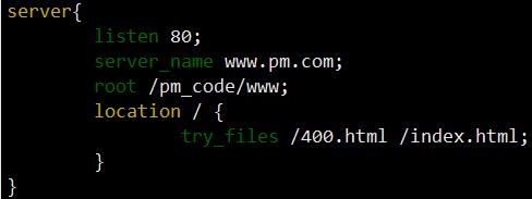 当在浏览器输入www.pm.com时,会先去找400.html,如果没有再去找index.html