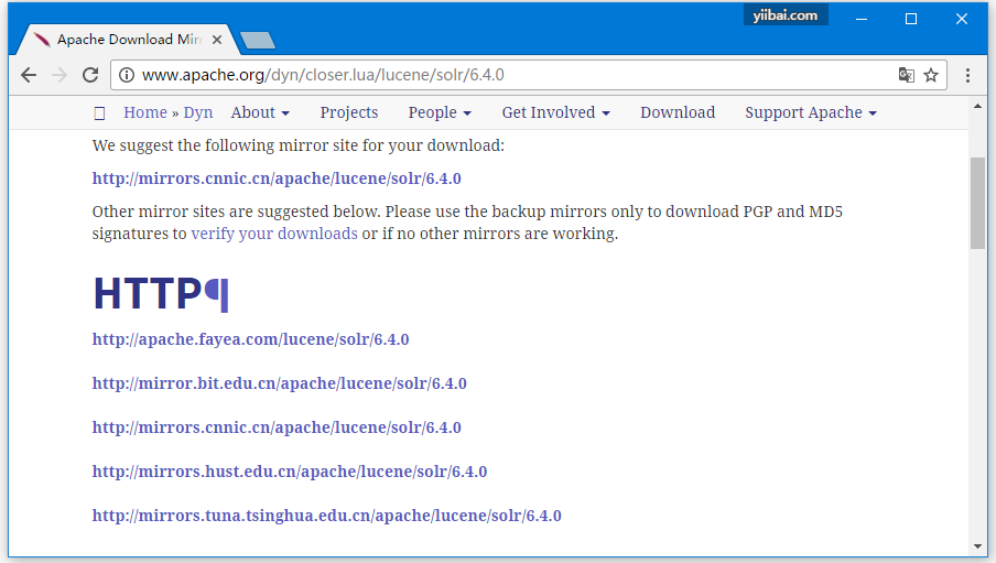 点击下载按钮(在上面的截图中箭头突出显示)。点击后将被重定向到Apache Solr的各种镜像的页面。 选择一个镜像并单击它,这将重定向到一个页面,您可以下载Apache Solr的源文件和二进制文件,如下面的屏幕截图所示。
